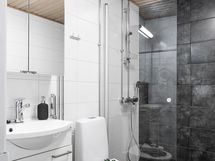 Asunnon helmi on kuitenkin suuri, lasitettu terassi, joka tuo asuntoon lisää tilaa ja mukavuutta ympäri vuoden. Terassi soveltuu täydellisesti rentoutumiseen, ruokailuun tai vaikkapa viherkasvien ystävälle.