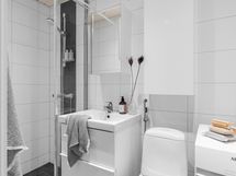 - Kylpyhuone 2015-2016 uusittu, taloyhtiön toimesta, suihku, suihkuseinä, peilikaappi, kaapit, allaskaappi, pesukoneliitäntä, kiinteät valaisimet.