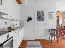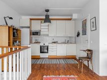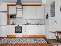 - Jääkaappipakastin, induktioliesi uusittu n.2022, liesituuletin, astianpesukone, kaapistot 2003 kun muutettu asunnoksi.