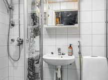 - Pesutilojen varusteet: Suihku, suihkuseinä, peilikaappi, pesuallas, pesukoneliitäntä, bidee-suihku ja wc-istuin.