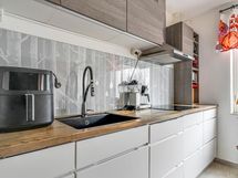 - Keittiön varusteet: Jääkaappi (Syksyllä 2024 uusittu), erillinen pakastin (Syksyllä 2024 uusittu), astianpesukone, mikroaaltouuni, erillisuuni, liesi ja liesituuletin. Liesi: Induktioliesi. Työtason materiaali: Puu. Kvikin keittiö, remontoitu 2015.