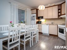- Keittiön varusteet: Jääkaappipakastin. Liesi: Keraaminen liesi. Työtason materiaali: Laminaatti. Keittiön ja olohuoneen väliseinä on otettu pois.