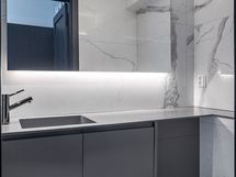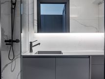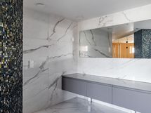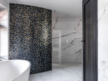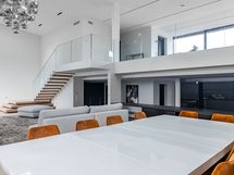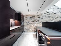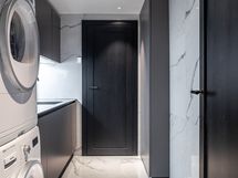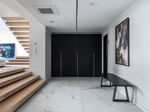 Jo sisään astuessa huomaa kodin ainutlaatuisen tunnelman. Korkea huonekorkeus, suuret ikkunat ja harmoninen värimaailma luovat ilmavan ja ajattoman kokonaisuuden. Alakerran sydämen muodostavat olohuone, ruokailutila ja laadukas avokeittiö, joka on viimeistelty huippuluokan kodinkoneilla, kuten kahdella integroidulla astianpesukoneella, induktioliedellä höyryimurilla, sisäänrakennetulla kahvikoneella ja viinikaapilla. Kestävät keraamiset tasot, tyylikkäät seinämateriaalit ja suurikokoiset lattialaatat viimeistelevät näyttävän kokonaisuuden.