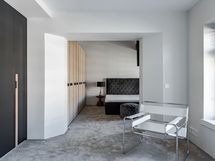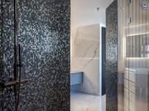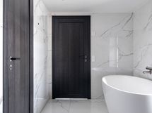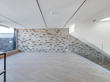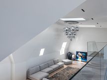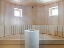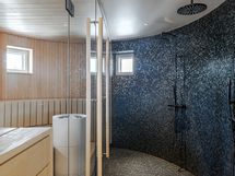 Makuuhuoneesta on kulku omalle parvekkeelle sekä kylpy- ja saunaosastolle, jossa uniikki pyöreämuotoinen sauna ja korkealaatuiset materiaalit tuovat spa-henkistä tunnelmaa. Kauniisti jatkuva kalanruotoparketti yhdistää alakerran yläkertaan, jossa muuntautuva avoin tila tarjoaa mahdollisuuden lisämakuuhuoneisiin tai toiseen olohuoneeseen. Yläkerrasta löytyy myös erillinen kylpyhuone sekä laajat lasiliukuovet, jotka avautuvat suoraan kattoterassille.