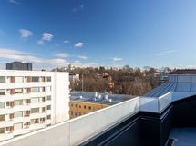 Huoneiston kruunu on sen 100m2 kattoterassi, joka sijaitsee talon vesikatolla! Näkymät on mahtavat! Lisäksi asunnolla kuuluu kellarikerroksen noin 15m2 varasto- / harrastetila omalla ilmanvaihdolla.