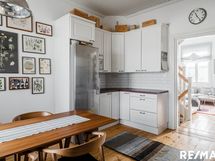 - Pinta-alan peruste: Ei tarkistusmitattu. Pinta-alat saattavat tämän ikäisissä kohteissa (yhtiö rekisteröity ennen 01.01.1992) poiketa olennaisestikin asuinrakennusten nykyisten mittaustapojen ja standardien (SFS 5139) mukaan laskettavasta asuintilojen pinta-alasta. Pinta-ala voi siis olla edellä mainittua pienempi tai suurempi. Pinta-ala yhtiöjärjestyksen mukaan on 35 m2. Asuntoa laajennettu kellarikerrokseen ja ullakolle. 90 m2 pinta-ala perustuun arvioon.