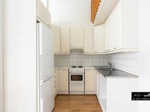 - Keittiön varusteet: Jääkaappipakastin, uuni ja liesituuletin. Liesi: Valurautaliesi. Työtason materiaali: Laminaatti ja rst.