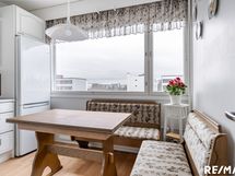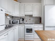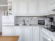 - Keittiön varusteet: Jääkaappipakastin, astianpesukone, liesi ja uuni. Liesi: Keraaminen liesi. Työtason materiaali: Laminaatti.