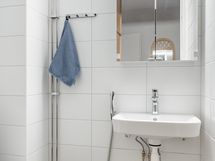 - Pesutilojen varusteet: WC-istuin, suihku, lattialämmitys, pesukoneliitäntä, suihkuseinä, pesuallas, peilikaappi ja rättipatteri. Erillisten WC:n lukumäärä: 1. Erillisen WC:n varusteet: WC-istuin, peilikaappi, pesuallas ja bidee-suihku.