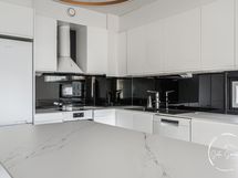 - Ns. Olokeittiö uusittu kokonaan v. 2020. Varusteet; Jää-pakastinkaappi, aamiaiskaappi, keraaminen liesitaso/ uuni, liesikupu, astianpesukone, vesihanana automaattisekottimella ja saareke, jossa säädettävä tunnelmavalaistus. Keraamiset upeat tasot, välitila lasia. Saarekkeen päädyssä myös vetolaatikot. Lattia: Amticon julkisen tilan ruusupuu-vinyylilattia. Seinät tapettia/ maalia.