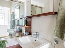- Pesutilojen varusteet: Suihku, pesukoneliitäntä, allaskaappi, pesuallas ja peili. Erillisten WC:n lukumäärä: 2. Erillisen WC:n varusteet: WC-istuin, lattiakaivo, allaskaappi, bidee-suihku, pesuallas, peili ja pesukoneliitäntä. Erillisen WC:n kuvaus: Yläkerran wc:ssä on kylpyhuonevalmius.