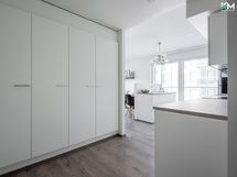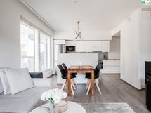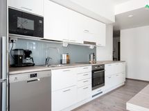 - Jääkaappi/pakastin, kiertoilmauuni, mikroaaltouuni, astianpesukone, induktioliesitaso, kaapistot, liesituuletin filtterillä
