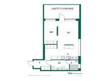 - sisään vedetty, lasitettu. Parvekkeen suunta: lounas