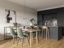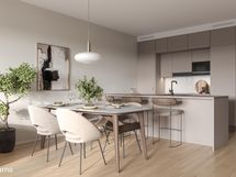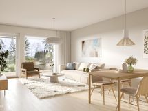 Viisi yksitasoista asuntoa ovat avaria ja täynnä luonnonvaloa suurten ikkunoiden ansiosta. Huolella mietityt pohjaratkaisut tekevät kodeista toimivia ja käytännöllisiä. Asunnot on viimeistelty korkealaatuisilla sisustusmateriaaleilla, ja voit valita mieleisesi kolmesta eri tyylistä: raikas Lumi, luonnonläheinen Kaarna tai dramaattisen tyylikäs Hiili.