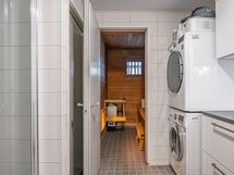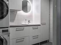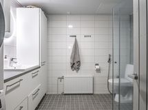 - Sauna, sähkökiuas, kylpyhuone, erillinen wc, suihkuseinä, peilikaappi, allaskaappi, pesukoneliitäntä, lattialämmitys, kiinteät valaisimet.