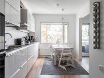 - Jääkaappi, jääviileäkaappi, erillisuuni, induktioliesi, liesituuletin, mikroaaltouuni, astianpesukone, kiinteät valaisimet.