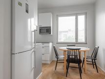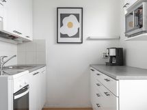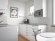 - Jääkaappipakastin, erillisuuni, induktioliesi, liesituuletin, astianpesukone, kaapistot, kiinteät valaisimet.