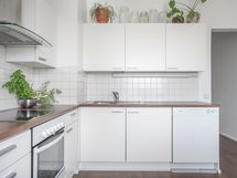 - Varusteet: Jääkaappipakastin, Astianpesukone. Työtaso: Laminaattitaso. Liesi: Erillisuuni, Liesitaso