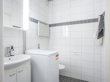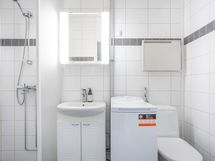 - Varusteet: Suihkuseinä, Pesukoneliitäntä, WC, Suihku, Peilikaappi. Siisti laatoitettu kylpyhuone. Tila pesukoneelle.