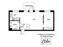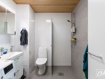 - Varustus: suihkuseinä, pesukoneliitäntä, lattialämmitys, wc-istuin, suihku, peilikaappi, peili.