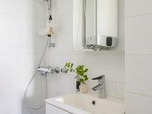 - Pesutilojen kuvaus: Varustelu: wc-istuin, suihku, suihkuverhotanko, peili, allaskaappi.