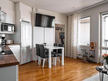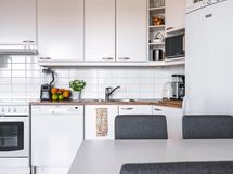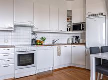 - Jääkaappipakastin, erillisuuni, keraaminen liesi, liesituuletin, astianpesukone, kaapistot, kiinteät valaisimet.