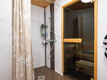 - Sauna, sähkökiuas, kylpyhuone, suihku, peilikaappi, allaskaappi, pesukoneliitäntä, lattialämmitys sähkökäyttöinen, kiinteät valaisimet.