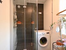 - Varustus: suihkuseinä, pesukoneliitäntä, wc-istuin, suihku.