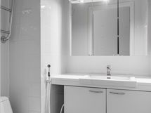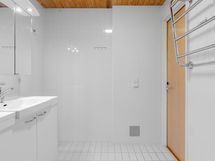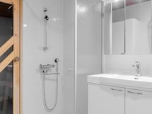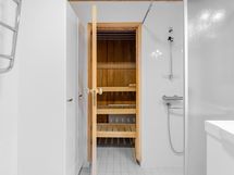 - Sauna, sähkökiuas, kylpyhuone, erillinen wc, suihkuseinä, peilikaappi, allaskaappi, pesukoneliitäntä, kiinteät valaisimet.
