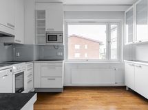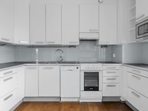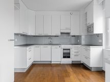 - Jääkaappipakastin, lattialiesi, keraaminen liesi, liesituuletin, astianpesukone, kaapistot, kiinteät valaisimet.
