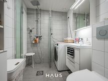 - Pesutilojen varusteet: WC-istuin, suihku, suihkuseinä, pesukoneliitäntä, lattialämmitys, peilikaappi, pesuallas, allaskaappi ja bidee-suihku. Pesutilojen kuvaus: Remontoitu taloyhtiön linjasaneerauksen yhteydessä 2021.