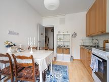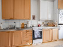 - Keittiön varusteet: Jääkaappi (2x), erillinen pakastin ja liesi. Liesi: Keraaminen liesi. Työtason materiaali: Laminaatti.