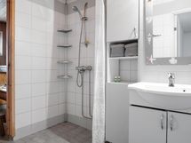 - Sauna, sähkökiuas, kylpyhuone, erillinen wc, suihku, peilit, allaskaappi, pesukoneliitäntä, kiinteät valaisimet.