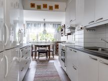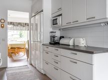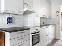 - Jääviileäkaappi, jääkaappipakastin, keraaminen liesi, liesituuletin, kaapistot, kiinteät valaisimet.