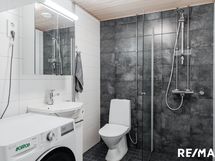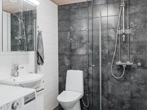 - Pesutilojen varusteet: WC-istuin, suihku, suihkuseinä, pesukoneliitäntä, lattialämmitys, peilikaappi, pesuallas, allaskaappi ja bidee-suihku.