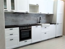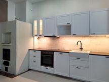 - Liesi: induktio, erillisuuni. Työtasot: laminaatti. Kylmäsäilytys: jääkaappi/pakastin. Varustus: astianpesukone. Pyykinpesukone keittiön alakaapissa.