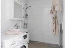 - Varustus: pesukoneliitäntä, wc-istuin, suihku, peilikaappi, kylpyhuonekaapisto.