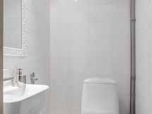 - Pesutilojen kuvaus: Kylpyhuone 1990 luvun pintamateriaaleilla. Lattialaatta uusittu putkiremontin yhteydessä v. 2010. Kylpyamme, suihku, peili, kaapisto, rättipatteri. Lattialämmitys. Erillisten WC:n lukumäärä: 2. Erillisen WC:n kuvaus: Kaksi erillistä wc. Pintamateriaalit 90-luvulta. Eteisen wc:n lattia uusittu putkiremontin yhteydessä v. 2010.