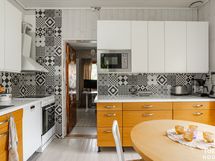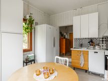 - Kaapistot (Epoc), Jääkaappi, pakastekaappi, induktioliesi, liesituuletin (hormi), mikroaaltouuni, astianpesukone, pöytätasojen materiaali laminaattia, välitila laattaa.