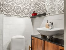Lattia laattaa, seinät laattaa. Erillisten WC:n lukumäärä: 1. Erillisen WC:n kuvaus: Wc-istuin, pesuallas, peili.