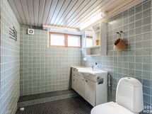 - Pesutilojen kuvaus: Suihkuseinä, peilikaappi, wc.istuin, kiinteät valaisimet, pesukoneliitäntä, lattialämmitys., alakerran wc:ssä sähköinen tuuletus.