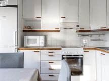 - Jääviileäkaappi, jääkaappipakastin, keraaminen liesi, liesituuletin vanha, astianpesukone vanha, kaapistot, kiinteät valaisimet.