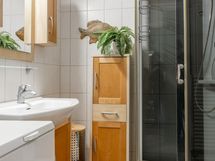 - Sauna, sähkökiuas, kylpyhuone, erillinen wc, suihkukaappi, peilit wc, peilikaappi kph, kaapit kph, allaskaappi kph, pesukoneliitäntä, kiinteät valaisimet.