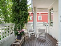 - Tilava terassitila, josta käynti pihalle.