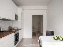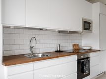 - Liesi: induktio. Työtasot: puu. Kylmäsäilytys: jääkaappi/pakastin. Varustus: mikroaaltouuni, astianpesukone, kiinteät valaisimet, liesituuletin / suodatin.