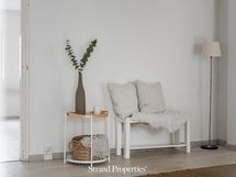 - Varustus: suihkuseinä, pesukoneliitäntä, lattialämmitys, wc-istuin, suihku, peili, kiinteät valaisimet, kylpyhuonekaapisto.
