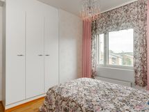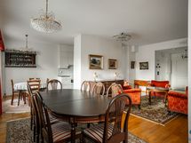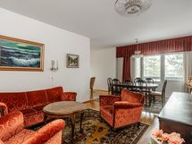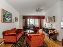 - 2-3 kpl. Olohuoneen ja yhden makuuhuoneen välinen seinä poistettu. Lattiat parkettia ja seinät tapetoitu.