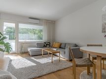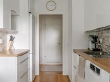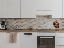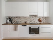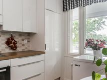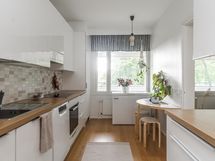 - Jääkaappipakastin, keraaminen liesi, liesituuletin suodatin, astianpesukone, kaapistot, kiinteät valaisimet. Keittiö on remontoitu vuonna 2017