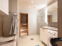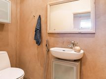 - Pesutilojen varusteet: Suihkuseinä, pesukoneliitäntä, lattialämmitys, peili, pesuallas ja allaskaappi. Erillisten WC:n lukumäärä: 2. Erillisen WC:n varusteet: WC-istuin, pesuallas, allaskaappi ja bidee-suihku. Erillisen WC:n kuvaus: Kaksi vessaa, Yksi per kerros.
