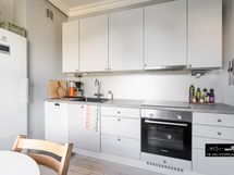 - Keittiön varusteet: Jääkaappi, erillinen pakastin (Alakerrassa), erillisuuni, liesi, liesituuletin ja astianpesukone (45 cm). Liesi: Induktioliesi. Työtason materiaali: Laminaatti. Uusittu 2020.